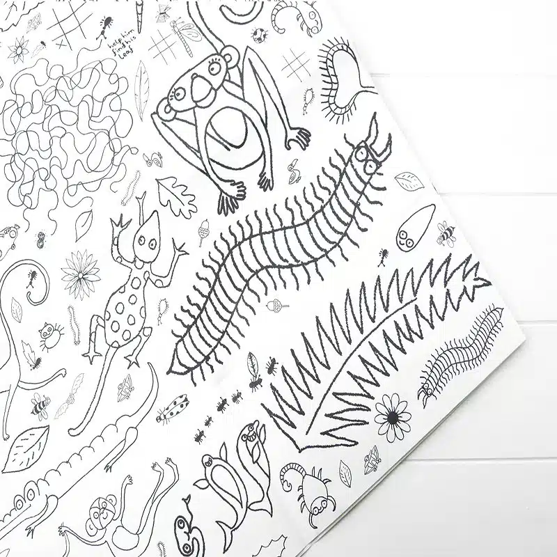The Eggnogg Colour-in Puzzle-time giant poster/tablecloth is jam-packed with mazes, dotty-dot-to-dots, noughts & crosses, word searches, snakes & ladders and all kinds of crazy creatures. This fun activity will entertain kids and bring hours of creativity and relaxation. It’s great for children’s birthday parties, weddings, school holidays, rainy days and playtime. With Eggnogg Colour-in Puzzle-time, it’s easy to take a break from screens and let everyone have some quiet time.