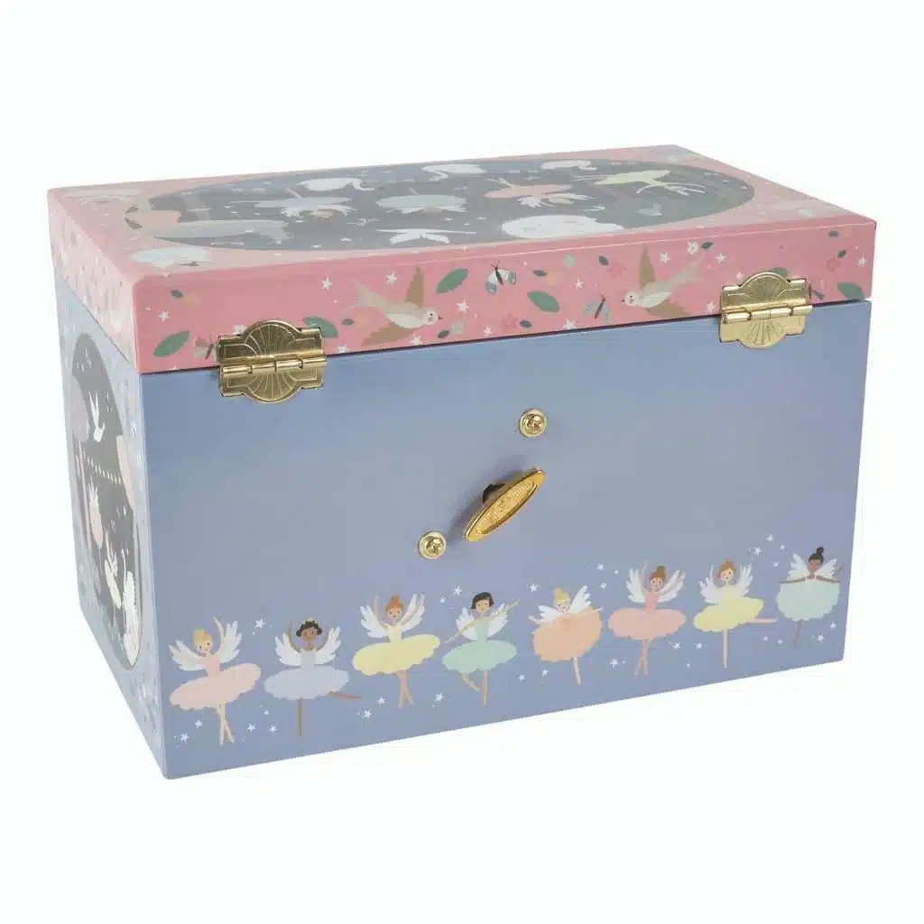 The Enchanted Musical Jewellery Box is adorned with captivating illustrations of ballerinas, swans, and more. This jewellery box is a treasure trove for storing precious trinkets. Its three drawers provide plenty of storage. As the lid is lifted, a beautiful ballerina gracefully twirls to the melody of Swan Lake. This Musical Jewellery Box from Floss & Rock is a timeless gift that any child would cherish forever.
