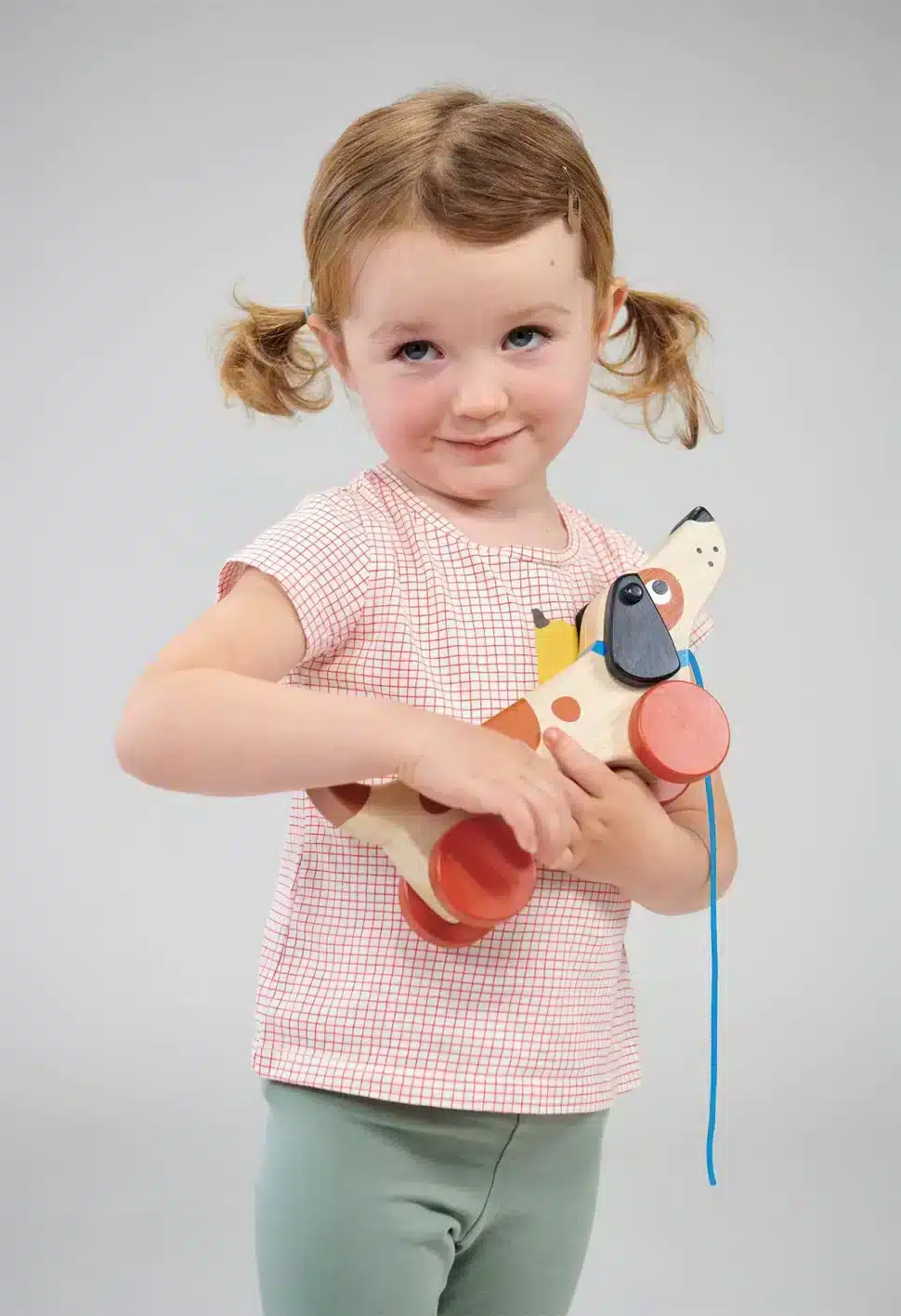 Meet our adorable new Puppy on Wheels. This wooden pull along dog will be your little one’s next best friend. They will not want to leave him alone. This irresistible puppy is the definition of cute. With its big, puppy dog eyes and floppy ears, it’s impossible not to fall in love at first sight. Your child will have a blast guiding their furry friend on exciting journeys around the house. Our pull-along wooden dog makes a perfect gift for all occasions.
